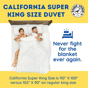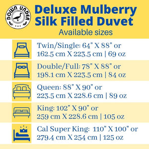 See the Down Under Bedding Sizing guide.
