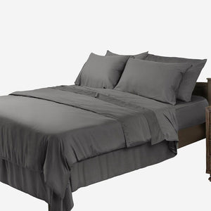The fabric is silky smooth and drapes nicely over my California King mattress. There are 4 corner ties to hold the duvet in place. I have been looking forever for a duvet and duvet cover that ACTUALLY fits my bed and this is perfect! Thank you!!